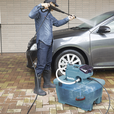 - Se ha conseguido una presión máxima 80 bar, tan alta como los modelos eléctricos mediante el uso de un motor BL sin escobillas de alta potencia y una bomba original de Makita.