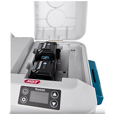 - Compatible con 4 fuentes de energía, baterías de 18v o 40v, conexión para toma de poder de automóvil y adaptador para AC
