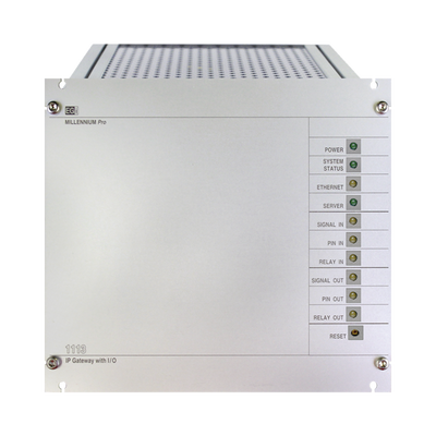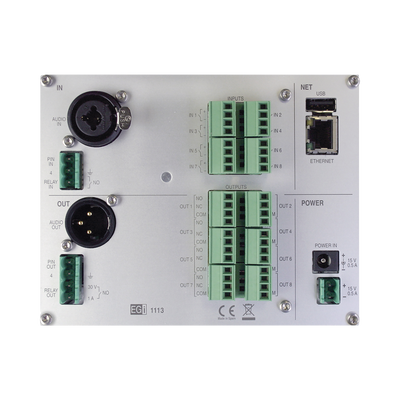 - Interfaz de audio IP que permite la emisión/recepción de audio y mensajes pregrabados a través de redes Ethernet. Con 8 relés IN/OUT para su conexión con sistemas de seguridad, alarmas de incendio, domóticos, etc.