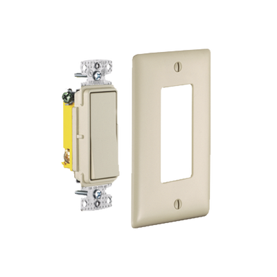 Interruptor Unipolar Residencial 15 A 120-277 V / Cableado Lateral y Trasero / Color Marfil.