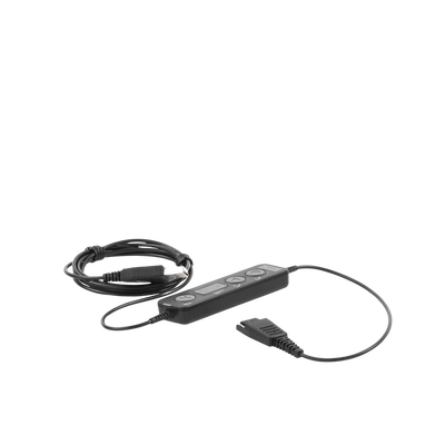 - Compatible con softphones líderes y auriculares QD de Jabra