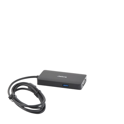 Unidad central que conecta dispositivos Jabra PanaCast y Jabra Speak con un ordenador mediante un solo cable USB-C.