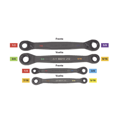 - Incluye las siguientes medidas: 1/2-5/8″, 3/4-9/16″, 1/4-3/8″ y 7/16-5/16″