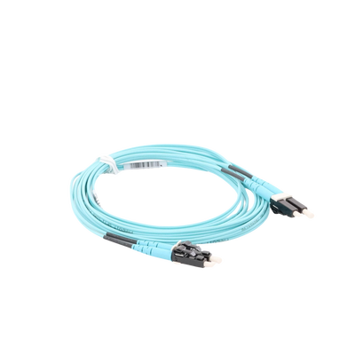 Jumper de Fibra Optica Multimodo 50/125 OM4, LC-LC Duplex, OFNR (Riser), Color Aqua, 3 Metros