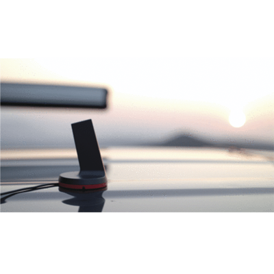 ¡La instalación es fácil! Nuestra antena exterior de excelente diseño se adhiere al techo con un imán de tierras raras súper fuerte. Para cubiertas no magnéticas, se incluye un disco adhesivo para asegurar la antena del kit Drive Sleek.