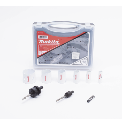 Kit de broca sierras (3/4 – 2 1/4 in) incluye 6 piezas de broca sierras, 2 adaptadores y resorte de expulsión.