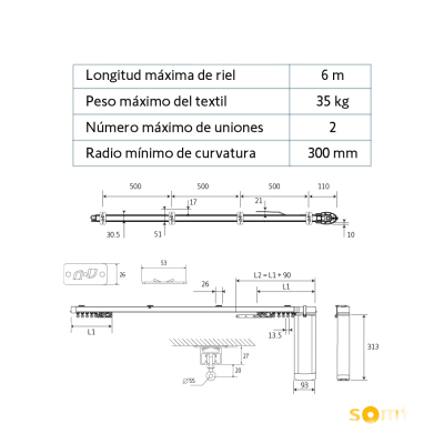 • Soporta cortinas maximo 60 Kg de peso.