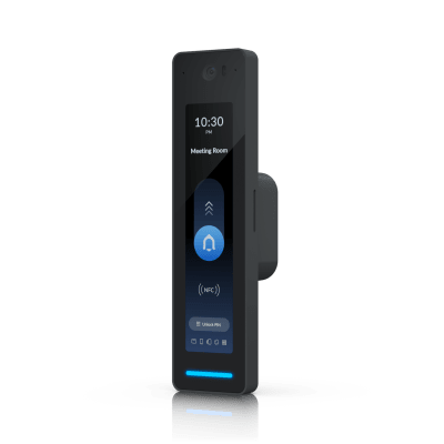 Lector de acceso avanzado con cámara integrada, PIN, desbloqueo facial, Apple Wallet / Google Wallet, desbloqueo móvil y intercomunicador bidireccional con timbre, ideal para sistemas UniFi Access de alto nivel.