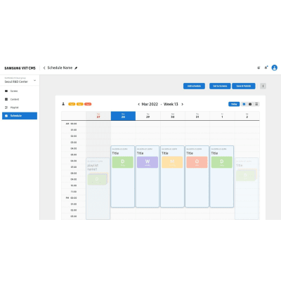 Crea, edita y programa listas de reproducción con una experiencia de usuario intuitiva y función de arrastrar y soltar, lo que permite un rápido despliegue de contenido y actualizaciones programadas.