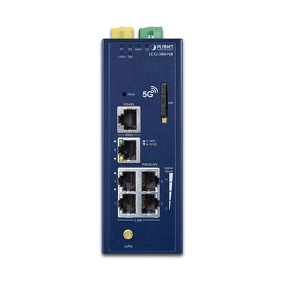 PLANET LCG-300-NR es una puerta de enlace LoRaWAN celular 5G NR de grado industrial con conectividad confiable para implementaciones de IoT. Es capaz de proporcionar acceso de banda ancha ultrarrápida con red celular 5G.