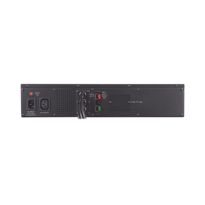 Estos bancos de bateria de 2 UR combinan estéticamente con los UPS y pueden ser montados en Rack ó Torre. El calibre grueso del cable de corriente está adaptado para conectar y usar conectores DC para fácil instalación. La cubierta de metal contiene las 8 baterías 12V/9Ah las cuales están conectadas en dos grupos de 4 baterías en serie.