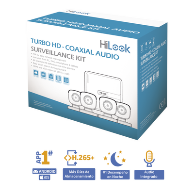 (MICRÓFONO Integrado) Kit TurboHD 1080p Lite / DVR 4 canales / Audio por Coaxitron / 4 Cámaras Bala de Policarbonato con Micrófono Integrado