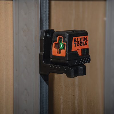 - El nivel láser verde autonivelante tiene una línea verde brillante horizontal y vertical fácil de leer con un rango de trabajo de hasta 50′ (15,2 m)