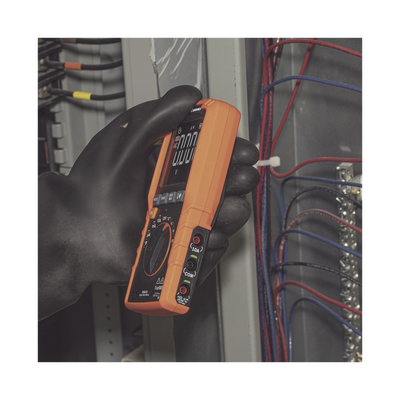 - Multímetro con tecnología de rango automático con media cuadrática real (TRMS) que ofrece mayor precisión