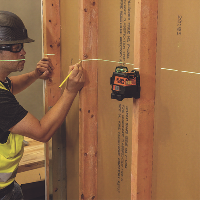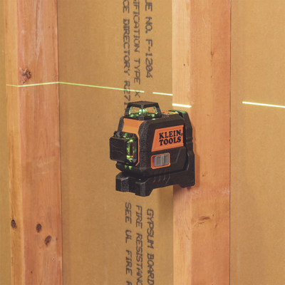 - El láser de alta precisión proyecta líneas limpias con una precisión de 3/16” a 30′ (9,1 m); la detección automática de desnivel hace que el láser parpadee cuando deja de estar nivelado