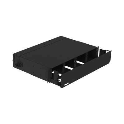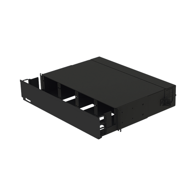 El gabinete para montaje en rack Opticom® de Panduit® garantiza la confiabilidad de la red al alojar, organizar, administrar y proteger hasta 192 terminaciones, empalmes, conectores y cables de conexión de fibra óptica. El FRE2U es de color negro, está hecho de acero y cuenta con 8 ranuras para casetes/FAP. Puede alojar 8 paneles adaptadores FAP, 8 casetes Opticom, 16 casetes HD Flex o módulos de empalme FOSM en un espacio de 2 RU. Se puede acceder fácilmente a las fibras a través de cajones extraíbles delanteros y traseros.