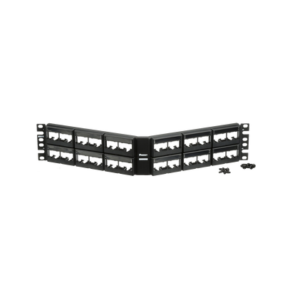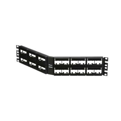 Los paneles de parcheo modulares consisten en un panel de metal con placas frontales moldeadas a presión que se pueden soltar por la parte delantera. Los paneles de conexión aceptan todos los módulos Mini-Com® para aplicaciones UTP, STP, fibra o A / V y deben montarse en Rackso o Gabinetes estándar de 19′. Los paneles de conexión están disponibles en densidad estándar de 24 y 48 puertos y alta densidad de 72 puertos. Los paneles de conexión angulados se diseñarán en un ángulo óptimo para ayudar a enrutar el cable.