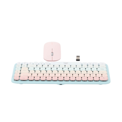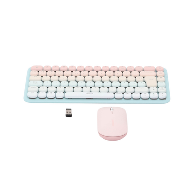 Paquete de Teclado y Mouse | 85 teclas en Español | Bluetooth y 2.4GHz | Mouse Ambidiestro | Sensor de DPI ajustable | Efectos de Iluminación del Teclado | Amplia compatibilidad | Color Rosa.