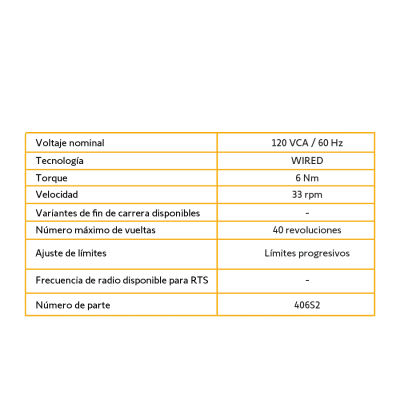 • 1 Motor 4 CM 6 NM 24 RPM 120 VCA RH PA WT
