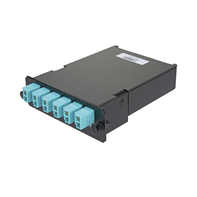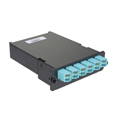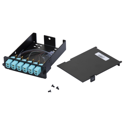 Placa Acopladora de Fibra Óptica FAP, Con 12 Pigtails Ribbon y 6 Conectores LC Duplex (12 Fibras), Para Fibra Multimodo OM3/OM4, Color Aqua