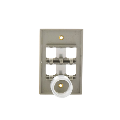 Las placas frontales de acero inoxidable están disponibles en configuraciones de salidas simples de 2, 4 y 6 puertos y varias configuraciones dobles. Cada placa frontal acepta módulos de cobre, fibra y AV que encajan y desconectan sin el uso de herramientas. El material de acero inoxidable se se puede instalar con una caja superficial de ABS de alto impacto para proporcionar una placa frontal duradera con acabado de acero inoxidable.