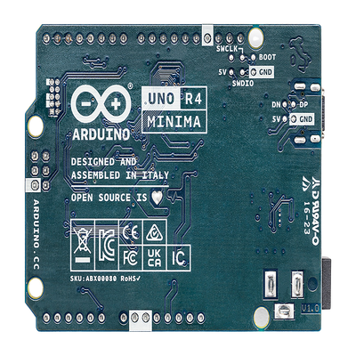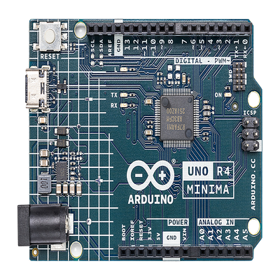 La Arduino UNO R4 Minima representa la evolución de la plataforma UNO hacia arquitecturas de 32 bits, manteniendo la compatibilidad total con el factor de forma y shields existentes. Basada en el microcontrolador Renesas RA4M1 (R7FA4M1AB3CFM#AA0) con procesador Arm Cortex-M4 a 48 MHz y unidad de punto flotante, ofrece un rendimiento significativamente superior a sus predecesores. La placa opera a 5V para garantizar compatibilidad hardware completa con accesorios diseñados para revisiones anteriores de UNO. Cuenta con 256 kB de memoria flash, 32 kB de SRAM y 8 kB de EEPROM, proporcionando amplio espacio para aplicaciones complejas. Incluye periféricos avanzados como DAC de 12 bits, OPAMP, RTC, MPU y interfaz CAN, siendo ideal para proyectos educativos, prototyping y aplicaciones maker que requieren mayor potencia de procesamiento.