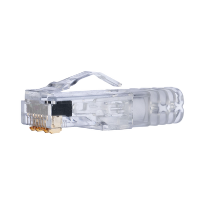 El Plug modular UTP de Categoría 6/Clase E de 3 piezas, de 8 posiciones y 8 hilos, se puede terminar en cable de par trenzado sin blindaje sólido o trenzado Panduit de 4 pares, 23-24 AWG, de 100 ohms con un diámetro máximo de aislamiento del conductor de 0.042 pulg. (1.07 mm) y diámetro máximo de forro de 0.250 pulg. (6.35 mm).