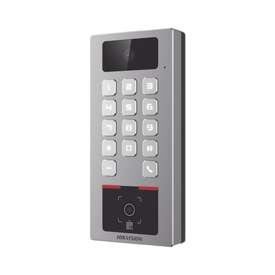 (PoE / 2 Relays) Teclado con Lector Físico de QRs para Exterior Antivandálico IP65 & IK09 con función de Videoportero Multiapartamento / Tarjeta, Código QR, PIN o App HikConnect / Cámara 2 MP compatible con NVRs /