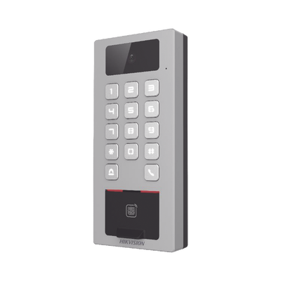 (PoE / 2 Relays) Terminal de Control de Acceso / Videoportero Multiapartamento Llamada a App / Teclado / Exterior Antivandálico IP65 & IK09 / Huella, Tarjeta, Código QR, PIN o App Hik-Connect / Cámara 2 MP compatible con NVRs