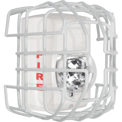 Esta es una forma excelente de proteger a las unidades de luz estroboscópica contra el vandalismo y el daño accidental. Estas jaulas de alambre brindan máxima protección a los dispositivos de notificación estroboscópicos de la serie Advance de los Sistemas Sensores SpectrAlert®. Fabricada con fuerte alambre de acero del 9 y recubierto con poliéster blanco o rojo, resistente a la corrosión y soportan fuertes golpes sin daños.