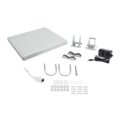 El QRT 5 es una antena resistente de panel ideal para exterior con un Routerboard incorporado. El dispositivo tiene una antena de 24 dBi y un transmisor inalámbrico de alta potencia de 5 GHz.