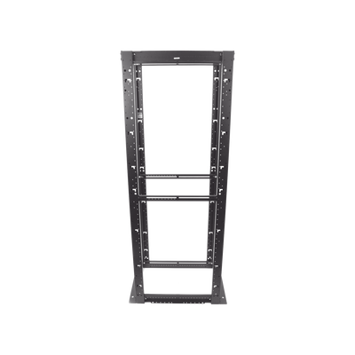 Rack de cuatro postes que cumple con los estándares EIA-310D y está construido en acero capaz de aceptar equipo de 19′ EIA. El método de construcción del rack se asegura de una estructura eléctricamente unida para facilitar la conexión a tierra.
