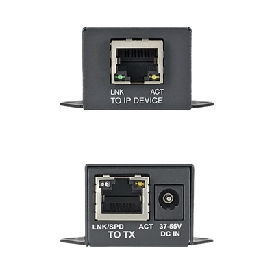 • Fuente de alimentación opcional (No incluida): los extensores PoE aceptan una fuente de alimentación con una salida de 55 Vcc/2Amp (se requieren 37 a 56 Vcc, se recomiendan 48 a 55 Vcc)
