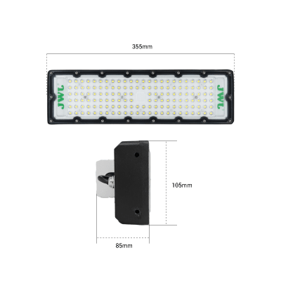Reflector LED 100 W /350 x 100 mm / 85 – 265 Vca~ 50/60Hz / TCC 6 500 K / Uso en exterior.