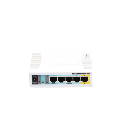 Cuenta con una CPU de 600 MHz, 128 MB de RAM y la función de salida PoE para el puerto #5 – puede proporcionar potencia a dispositivos PoE (Pasivo), con la misma tensión que se aplican a la unidad. Carga máxima en el puerto es de 500mA.