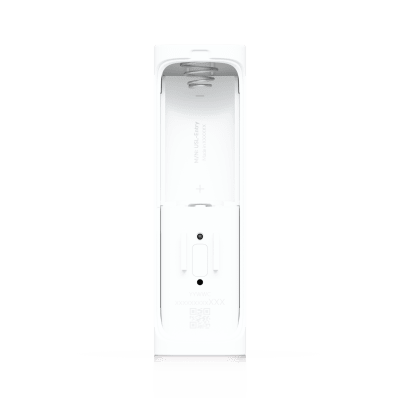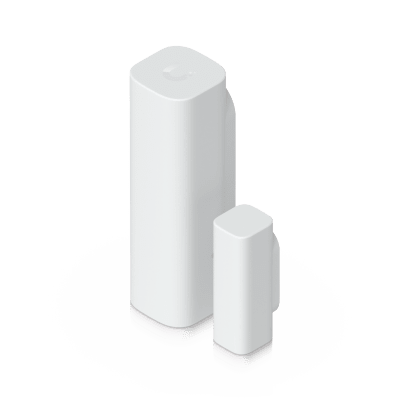 Sensor de apertura para puertas y ventanas con conectividad SuperLink, alcance de hasta 2 km y batería de hasta 6 años, ideal para integración con UniFi Protect.
