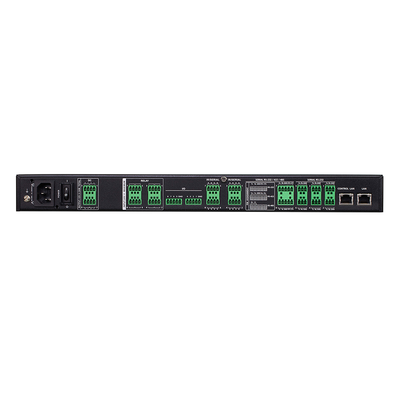 - 8 x IR programables / Puerto RS-232 unidireccional (4x conectores de bloque de terminales de 4 polos)