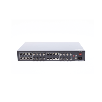 El KIT-TT16PVTURBOX-RX es un transceptor de video Activo de 16 canales (Balun) que te permite enviar el video de tus cámaras análogas y energía por un mismo cable de red (UTP) Cat 5e ó 6, alcanzando distancias de 150 metros en 4K, 200 metros en 5Mp y 250 metros en 1080P. Esto es posible ya que el equipo receptor genera y envía 36 Vcc a los transmisores y este regula el voltaje a 12 Vcc permitiendo con ello el envió a largas distancias.