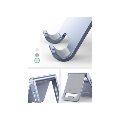 Soporte para Teléfono Celular de Aluminio / Angulo Ajustable / Amplia Compatibilidad con dispositivos de 4.7” a 7.9” / Antideslizante / Antiarañazos / Plegable / Color Azul