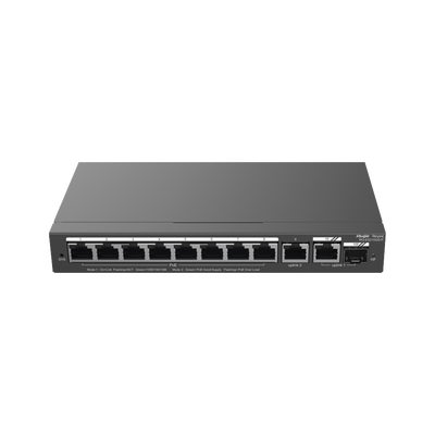 Switch Administrable con 8 puertos Gigabit PoE, 2 Uplinks Gigabit (1 SFP), gestión gratuita desde la nube
