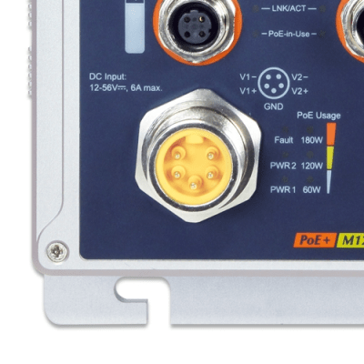 El Switch Industrial ISW-808PT-M12 de PLANET es una solución robusta y resistente a vibraciones, diseñada para entornos industriales exigentes. Con un gabinete IP67 de aluminio, este switch ofrece 8 puertos 10/100TX con conectores M12 resistentes al agua y al polvo, compatibles con IEEE 802.3at PoE+. Ideal para aplicaciones en fábricas, transporte público y sistemas de vigilancia, garantiza un rendimiento confiable en condiciones extremas de temperatura (-40 a 75°C) y protección contra interferencias electromagnéticas.