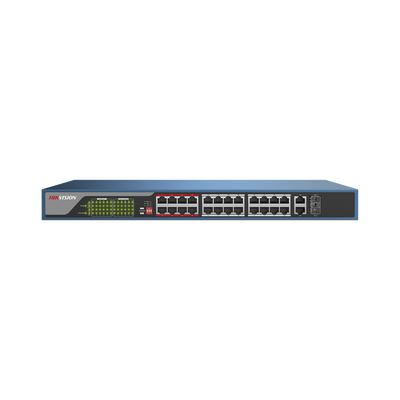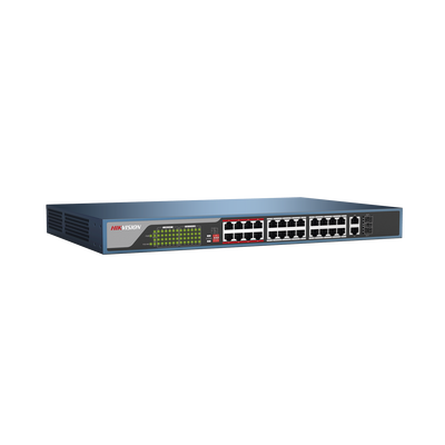 Switch No Administrable 24 Puertos PoE+ 100 Mbps / Switch PoE 250 mts Larga Distancia / 2 Puertos SFP / 2 Puertos Gigabit / 370 Watts Total