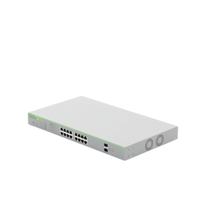 El conmutador WebSmart Allied Telesis GS950/18PS V2 Gigabit PoE+ cuenta con 16 puertos 10/100/1000T y dos puertos SFP, que ofrecen hasta 30 watts por puerto (PoE+) para admitir cámaras de videovigilancia, puntos de acceso inalámbricos, teléfonos IP y otros dispositivos alimentados por PoE. PoE+ elimina la necesidad de cableado de energía separado y minimiza el desorden de fuentes de alimentación y adaptadores para una implementación simplificada.