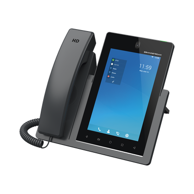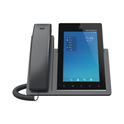El GXV3470 es un poderoso videoteléfono de escritorio para empresas, que ofrece una solución integral de comunicaciones. Este videoteléfono IP brinda una experiencia eficaz gracias a su pantalla táctil capacitiva de 7 pulgadas con una resolución de 1280 x 800 pixeles, cámara inclinable de megapíxeles avanzados, micrófonos duales y soporte para videoconferencia HD. El GXV3470 incorpora dos puertos Gigabit con PoE/ PoE+, Wi-Fi 6 y soporte Bluetooth 5.0 integrados. También ejecuta Android 11 y ofrece acceso instantáneo a cientos de miles de aplicaciones para Android. Gracias a la combinación de un novedoso videoteléfono IP, una solución avanzada de videoconferencia y la funcionalidad de una tableta Android, el GXV3470 ofrece a las empresas de todo el mundo una solución eficaz de comunicación de escritorio y productividad.