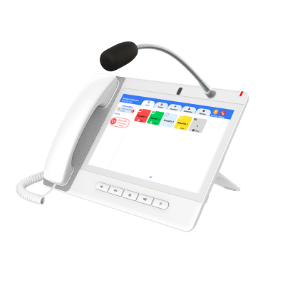 El A320i está diseñado para entornos industriales, con micrófono de cuello de cisne y manos libres HD. Con su pantalla táctil de 10.1′, 116 teclas programables y conectividad Wi-Fi/Bluetooth, optimiza la comunicación en centros de mando y gestión. Equipado con cámara ajustable y tecnología PTM HD, ofrece experiencias superiores de audio y video para conferencias grupales.