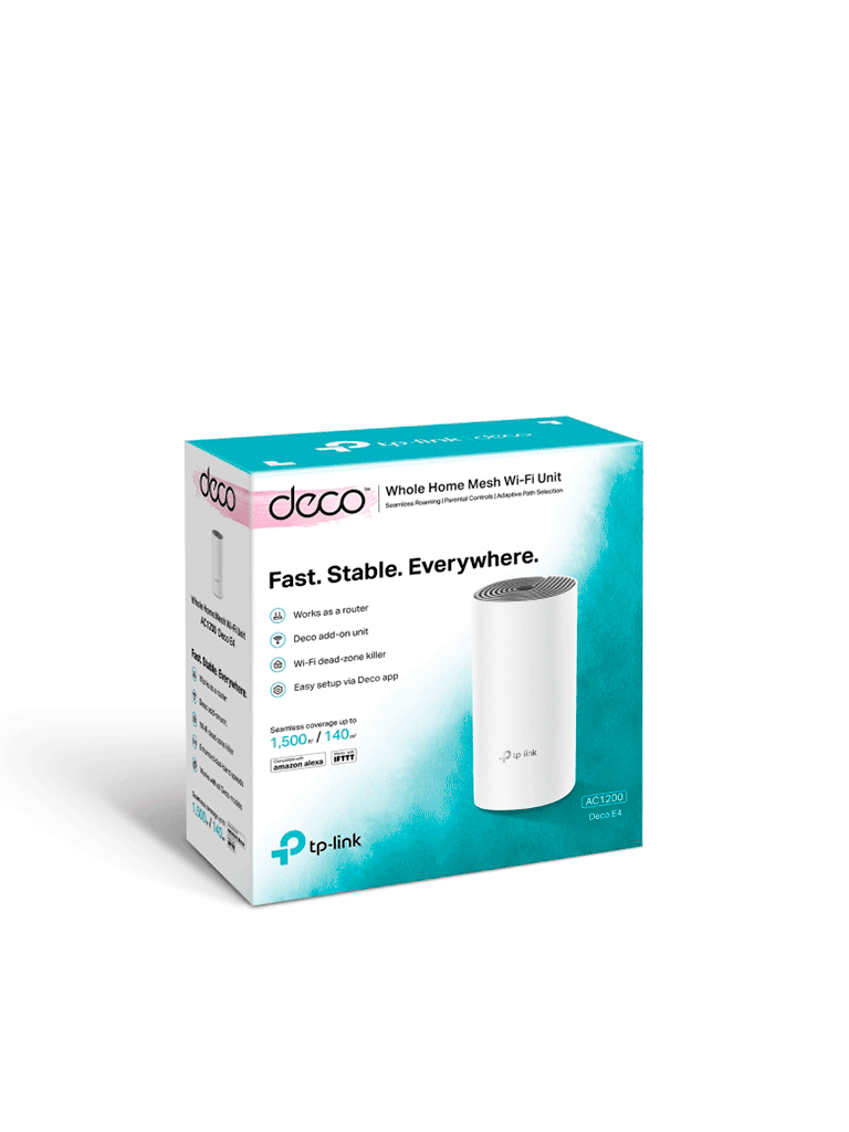 Deco E4 es compatible con todos los demás modelos Deco para formar una red Mesh. Amplíe la cobertura de Mesh Wi-Fi en cualquier momento simplemente agregando más Decos.