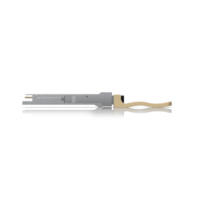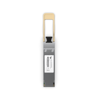 Transceptor QSFP28 que admite conexiones 100G de hasta 100 m utilizando fibra multimodo con un conector UPC tipo B MPO-12.