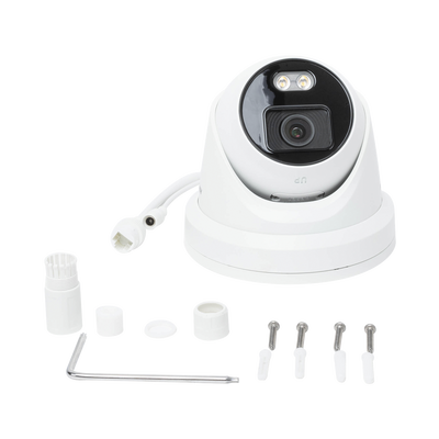 Turret IP 4 Megapixel / Imagen a color 24/7 / Lente 4 mm / Luz Blanca 30 mts / WDR 130 dB / Exterior IP67 / Micrófono Integrado / Captura Facial / Videoanaliticos (Filtro de Falsas Alarmas) / MicroSD