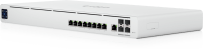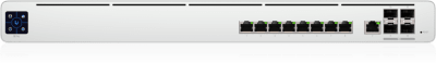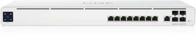 Router de alto rendimiento para ISPs con uplinks 10G mediante (4) SFP+, puertos GbE para LAN/WAN, administración con UISP y pantalla táctil 1.3" para monitoreo local.