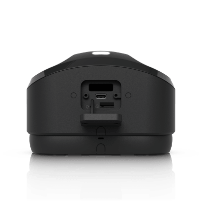 Cámara para exterior con cobertura 180° y resolución Dual 4K, con audio bidireccional, IA (detecciones inteligentes, reconocimiento facial y de matrículas), y alimentación PoE+.